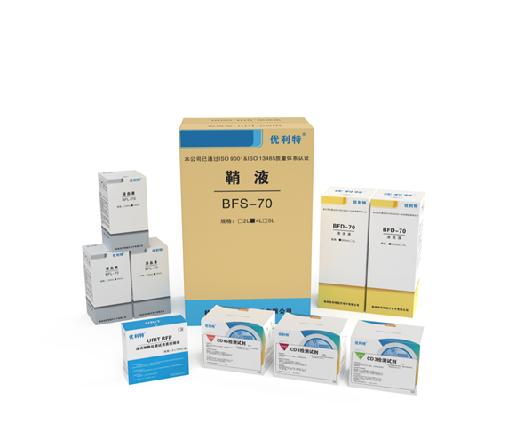 溶血素(BFL-70,100mL)、鞘液(BFS-70,4L)、清洗液(BFD-70,500mL)、流式細(xì)胞儀調(diào)試用質(zhì)控微球(3×10mL/盒)、URIT CD檢測(cè)試劑。