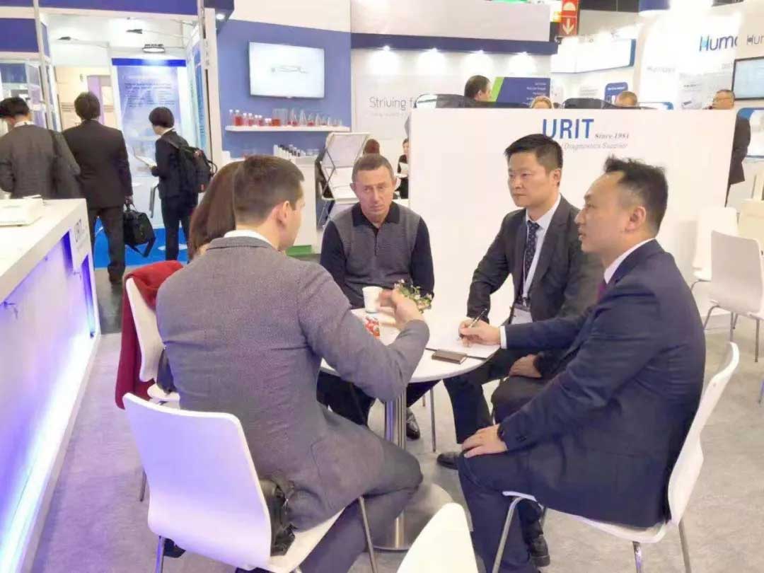 展會(huì)上,首次亮相歐洲舞臺(tái)的US-2000系列模塊化全自動(dòng)尿液分析流水線,作為尿液分析與人工智能識(shí)別技術(shù)相融合的全新突破,將尿液有形成分分析速度提升到240測(cè)試/小時(shí),完美解決歐美高端市場(chǎng)集中化實(shí)驗(yàn)室大批量樣本的處理效率問題。展會(huì)第一天就有德國,意大利,以色列等國的經(jīng)銷商赴約洽談合作。